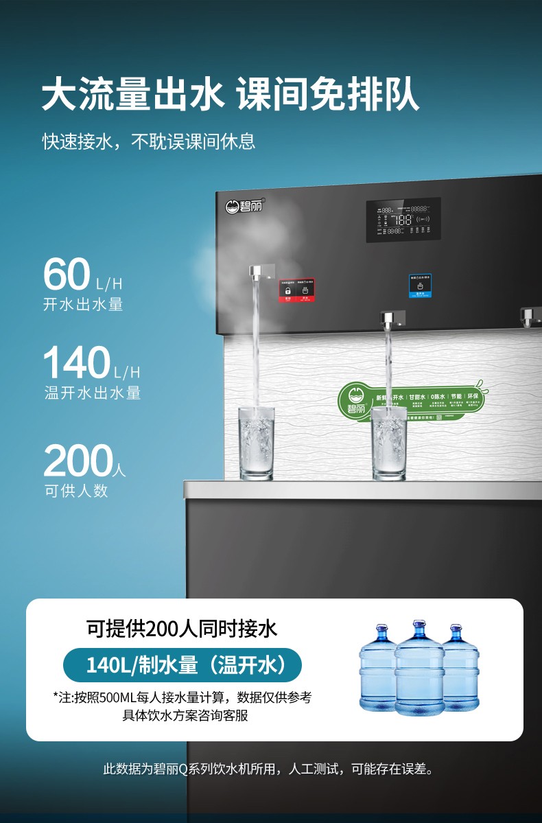 • 供 水 量:開水60升/時(shí),溫開水140升/時(shí)